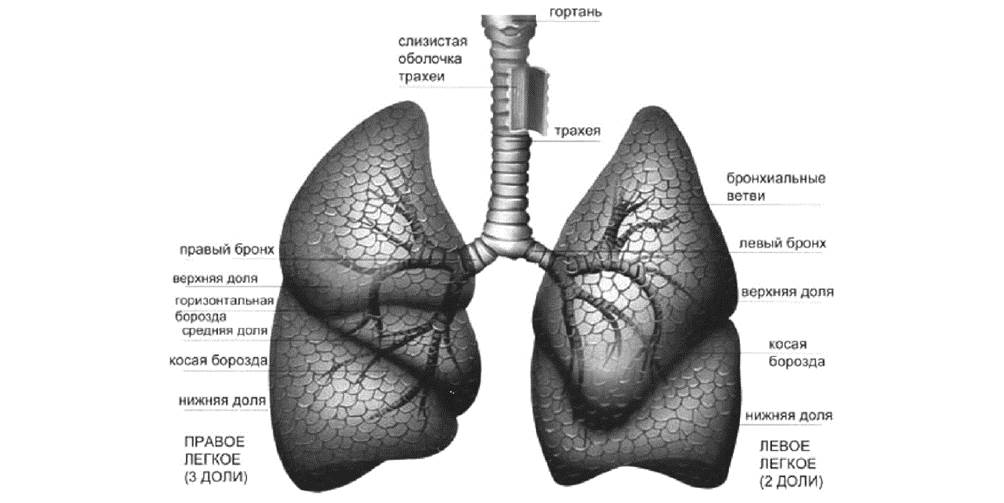 Будет уместным сказать несколько слов о легких и их функциях. Органы дыхания состоят из двух легких и дыхательных путей, ведущих к ним. Легкие отделены друг от друга сердцем, крупными кровеносными сосудами и дыхательными путями. По своей структуре лёгкие пористы, мягки, их ткани очень эластичны. Легочная ткань содержит огромное число воздушных мешочков (альвеол), через стенки которых осуществляется газовый обмен между воздухом и кровью. Лёгкие покрыты тонкой серозной мембраной, которая называется плеврой; в ней содержится серозная жидкость, которая предотвращает трение при дыхании. Одна стенка плевры плотно прилегает к легким. Другая стенка прилегает к грудной клетке. Этой мембраной легкие и прикреплены к грудной клетке. Правое легкое имеет три доли. В левом легком только две. В каждом легком различают верхушку и основание. Основание обращено к диафрагме, мускульной стенке, отделяющей грудь от желудка. Верхушка находится у основания шеи.Лёгкие выполняют две основные функции.