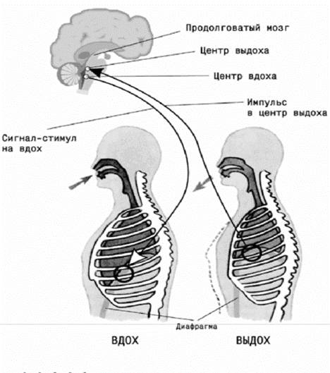 Дыхание – единственный из важнейших механизмов жизнедеятельности организма, который может одинаково хорошо контролироваться не только на подсознательном, но и на сознательном уровне. Мы не можем участить, замедлить или остановить биение сердца, но легко, по своему желанию, можем задержать дыхание, дышать чаще, глубже или вообще не дышать какое-то время. На подсознательном уровне контроль над дыханием автоматизирован и осуществляется дыхательным центром, расположенным в головном мозге (модуле). А происходит это очень просто: есть два дыхательных сенсора – один, в каротидной части сердечной аорты, измеряет насыщенность артериальной крови кислородом; второй, в мозговом желудочке, измеряет насыщенность углекислого газа в венозной крови мозга. Как только уровень кислорода в крови понижается, кислородный сенсор посылает сигнал в дыхательный центр головного мозга, который немедленно даёт импульс для движения диафрагмы вниз и сокращения мышц, расширяющих грудную клетку, – происходит вдох; в случае, когда в дыхательный центр поступает сигнал из сенсора, измеряющего насыщенность углекислого газа в венозной крови мозга, немедленно инициируется импульс для движения диафрагмы вверх и сокращения мышц, сжимающих грудную клетку, – происходит выдох. Вот так мы дышим.