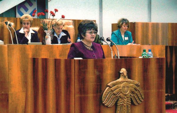 Председателем Союза женщин Республики Коми меня избрали на 10-м съезде женщин. Это был один из самых шумных женских съездов. Глава Республики Спиридонов Ю. А. не на шутку был обеспокоен большой активностью и демократическими настроениями женщин. По его предложению место съезда было перенесено из здания Государственного Совета в здание Главы Республики. Все мы оказались на одной подводной лодке – это шутка. Но съезд по большому счету был поставлен в условия, в рамках которых делегаты с мест должны были на альтернативной основе выбрать лидера.
