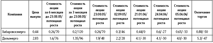 Следующим ключевым событием является проведение оценки стоимости акций компаний для выставления оферты по выкупу активов компаний у акционеров, которые либо не голосовали за реформирование компаний, либо голосовали против. Исходя из отчетов оценщиков по двум компаниям (ОАО «Дальэнерго» и ОАО «Амурэнерго»), договор на оценку заключен 21.01.2006. Окончание оценки – 24.04.2006.