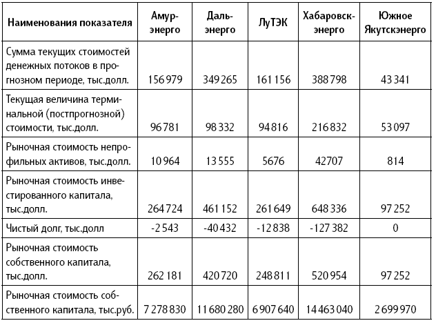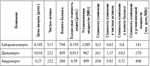 4. Оценщиками были оценены компании: исходя из чистых активов (0,63—1,17); к валюте баланса (0,4–0,72); к установленным мощностям (141–408) тыс. долл./МВт.