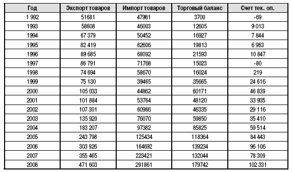 ПОКАЗАТЕЛИ ВНЕШНЕЙ ТОРГОВЛИ РФ И СЧЕТ ТЕКУЩИХ ОПЕРАЦИЙ (1970–2007 ГГ.)
