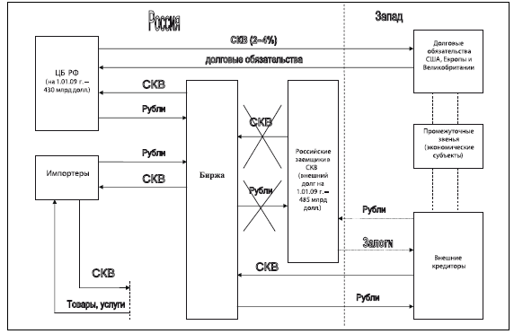 Внешние займы. Механизм решения данного вопроса подробно описан в разделе «Системная ошибка российской экономики». В качестве вывода – запретительный характер по привлечению внешних займов в СКВ.