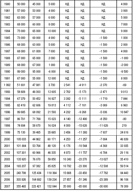 ПОКАЗАТЕЛИ ВНЕШНЕЙ ТОРГОВЛИ РФ, БАЛАНСА ИНВЕСТИЦИОННЫХ ДОХОДОВ И СЧЕТ ТЕКУЩИХ ОПЕРАЦИЙ (1970–2007 ГГ.)
