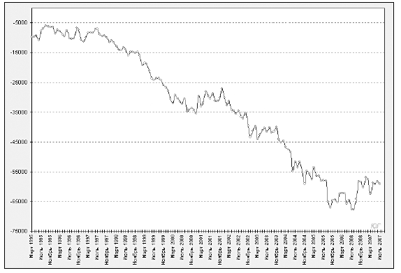 В настоящее время мир переживает высокие цены на сырье, можно сказать, исторически высокие, отличающиеся от среднеисторических не менее чем на 100–300 %. Страны – экспортеры сырья, получив излишек валютных средств, активно наращивают потребление импорта, с одной стороны, увеличивают социальные обязательства и объемы внешних инвестиций, с другой стороны. Кроме того, наблюдается активный приток в большей степени портфельных инвестиций в страну, которые осторожно можно назвать спекулятивными. Существуют разные трактовки спекулятивного капитала. Как правило, у основной части населения данный вид финансовых ресурсов ассоциируется с негативными вещами. Когда я говорю «спекулятивный капитал», то основной критерий – высокая мобильность, напрямую зависящая от экономической ситуации в стране инвестирования. Если ситуация ухудшается, то идет массовый возврат ранее инвестированных средств. Не исключаю, что не менее 60 % портфельных инвестиций составляют ранее выведенные из страны капиталы.
