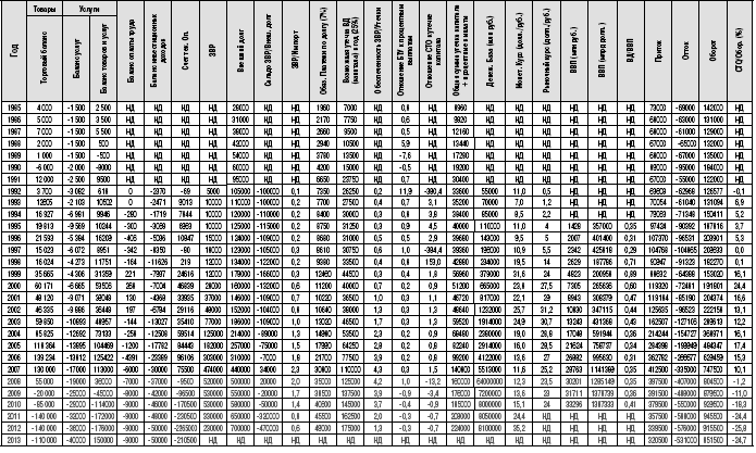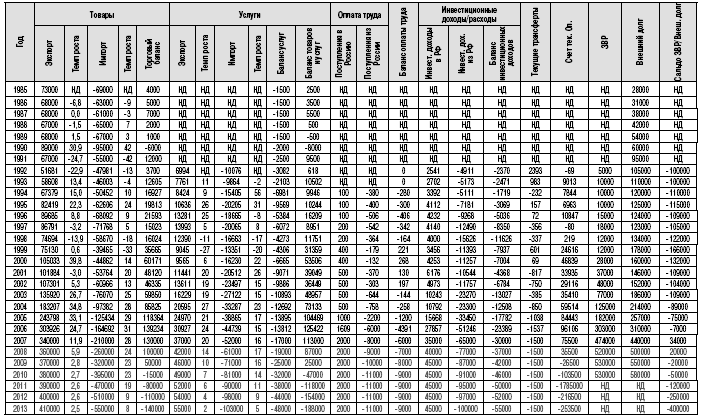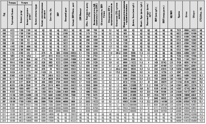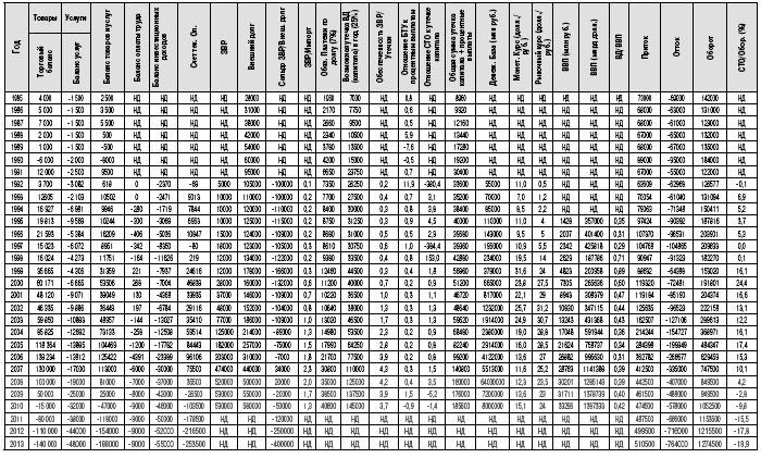 ПОКАЗАТЕЛИ ПЛАТЕЖНОГО БАЛАНСА И МАКРОЭКОНОМИЧЕСКОЙ СТАТИСТИКИ РФ 1985–2013 ГГ. (МЛН ДОЛЛ.)