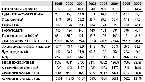 СРЕДНИЕ ЭКСПОРТНЫЕ ЦЕНЫ НА ОСНОВНЫЕ ТОВАРЫ