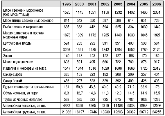Общая рекомендация инвесторам: необходим постоянный мониторинг платежного баланса страны, особенно счета текущих операций. Следует очень осторожно относиться к притоку внешних инвестиций, которые нужно рассматривать строго с учетом накопленного внешнего долга и ЗВР. Постоянное бравирование чиновников общей величиной иностранного капитала – это либо проявление полного непонимания элементарных рыночных взаимосвязей и общих тенденций, либо очковтирательство. Для инвесторов, склонных к более глубокому анализу, рекомендую применять таблицы, где указаны средние цены на экспортную и импортную продукцию (табл. 7, 8), подставляя которые можно получить общие экспортные доходы и расходы по импорту, или ждать опубликования оценки платежного баланса.