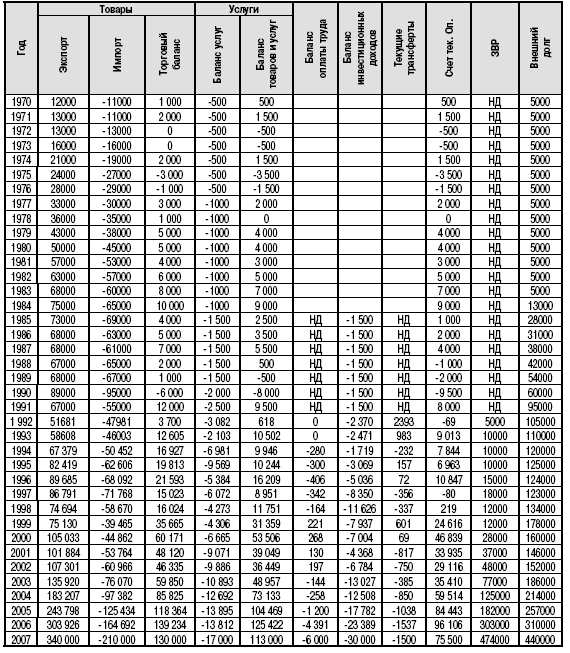ПОКАЗАТЕЛИ ПЛАТЕЖНОГО БАЛАНСА РОССИИ, 1970–2007 ГГ.