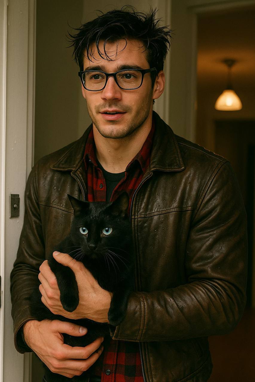 Парень стянул с себя кожанку, стряхнул с нее дождевые капли и повесил на дверную ручку, взлохматил и без того взъерошенные волосы и вытер стекла очков о свою байковую клетчатую рубашку, на которой сейчас красовался грязный след в том месте, где было прижато мое тельце.