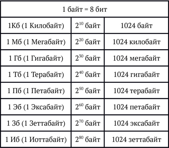 Не будем вдаваться в математические подробности. Обычному пользователю достаточно знать, что компьютер использует двоичную систему счисления, что бит это единица измерения количества информации, равная одному разряду в двоичной системе счисления и что 8 битов составляют один байт.