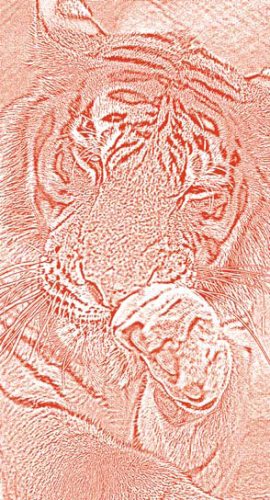 Дети, рисующие тигра, точно знают, какого он цвета – зверь у них всегда получается ярко-оранжевым. Видимо, таким же представлял его и английский поэт Уильям Блейк, рассказавший нам о «горящем» (burning) тигре. На самом деле основной цвет шерсти тигра не оранжевый и даже не рыжий, как у лисицы, а жёлто-ржавый или красно-бурый с желтоватым оттенком. Чёрные или тёмно-бурые поперечные полосы начинаются на лбу, где, по древним китайским поверьям, они сплетаются в иероглифы, а затем идут по всему телу.