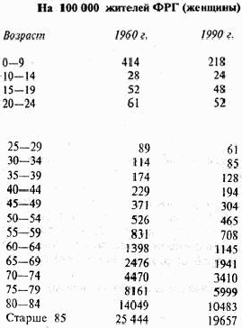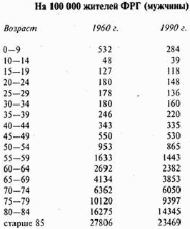 Нет сомнений, что в последние годы и десятилетия опасность заболеть раком возросла. Это отнюдь не означает, что рак стал опаснее. Об этом свидетельствует таблица, в которой приведены данные, сколько человек умерло от рака в 1960 и 1990 гг.