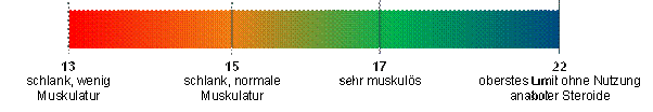 Nachdem der Körperfettanteil bestimmt wurde, bietet der Fettfreie-Masse-Index (FFMI) die Möglichkeit die Muskelausprägung des Körpers einzuschätzen. Der FFMI errechnet sich aus dem Körperfettanteil, der Körpergröße und dem Körpergewicht. Der FFMI ersetzt den BMI in der Körperanalyse. Die errechneten Werte sind folgendermaßen zu interpretieren: