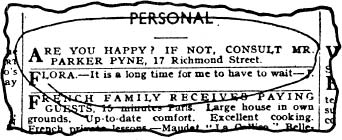 Suddenly she felt alone, helpless, utterly forlorn. Slowly she took up the morning paper and read, not for the first time, an advertisement on the front page.
