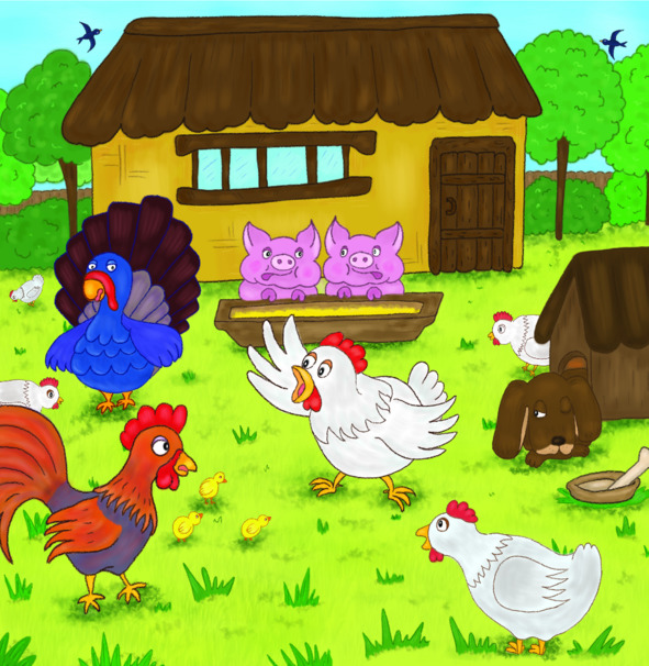 Вот, как-то раз,Слетелись ласточкиНа птичий двор.И в тот же часЗавелся разговор.Куриная компанияВо всем составе собраласьПослушать их рассказ.