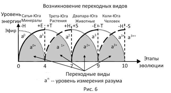 Мы подтвердили и даже доказали на примере кванта света рисунка 4, что существуют в нашей эволюции десять этапов и четыре цикла единого цикла Маха-Юги. Но теперь встаёт вопрос исследования того, какие формы существ могли эволюционировать в этих десяти этапах? Ведь эти этапы появились не просто так. Они нам явно указывают на то, что в них как-то могла меняться структура материальных форм и их миров.