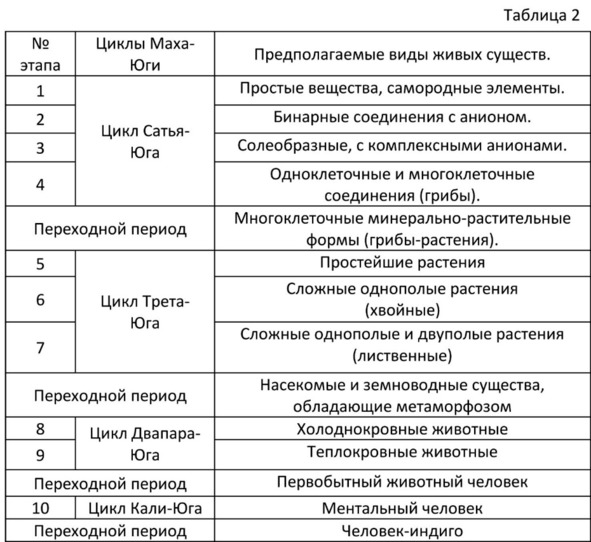 Мы попытались это приблизительное изменение видов в меньших циклах Маха-Юги отобразить в таблице 2.