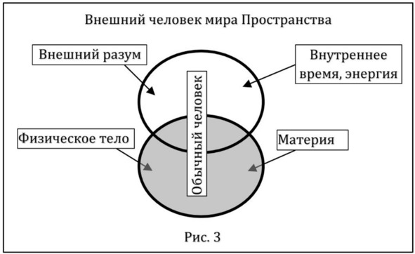 – обычная материальная жизнь в мире Пространства, имеющая отношение к обычному материальному телу, которое обладает обычным для нас , являющимся его принадлежностью (рисунок 3); внешним разумом