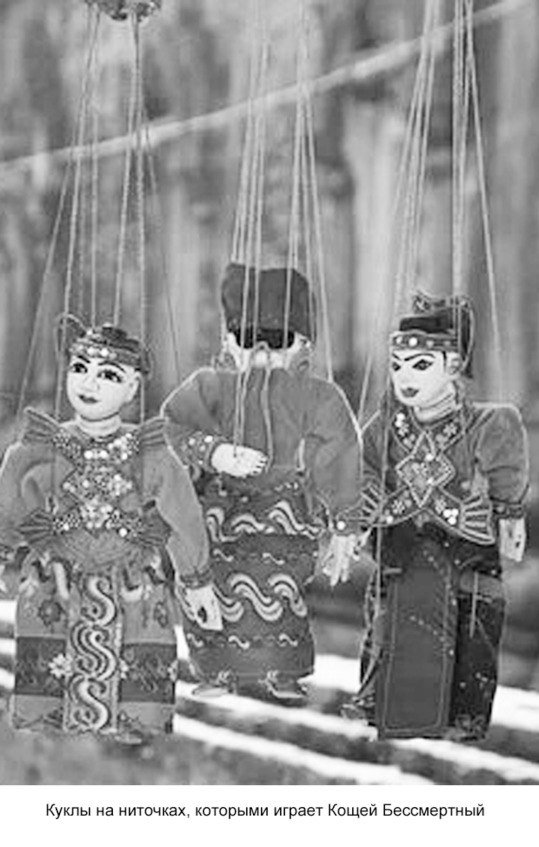Чтобы выявить пособников Кощея Бессмертного, Ивану-Царевичу надо было попасть за эту «сеть», за кулисы сцены жизни. Нужно было понять то, каким образом можно вырвать эти «верёвочки» из их тёмных рук и увести людей от их влияния. А заодно надо было сменить тёмного режиссёра в этом спектакле жизни на светлое Божество.