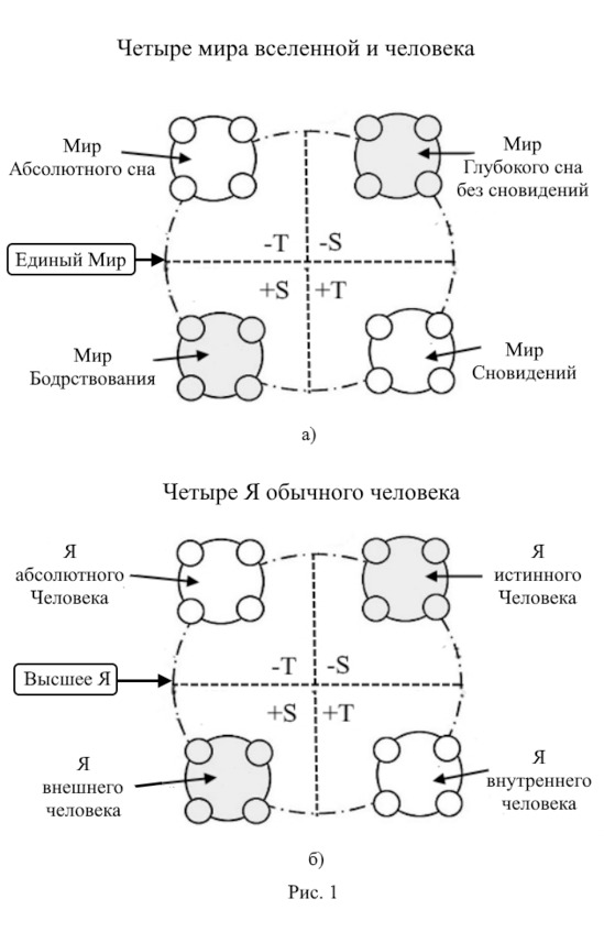 А к чему или к кому можно отнести «Высшее Я», если оно даже вышло за пределы мира абсолютного Человека? Не к самому ли…? А что собой, аналогично рисунку 1б, объединяет большое «кольцо» «модели пяти колец» рисунка 1а? Чтобы ответить на эти вопросы, необходимо более тщательно исследовать четыре мира Снов.