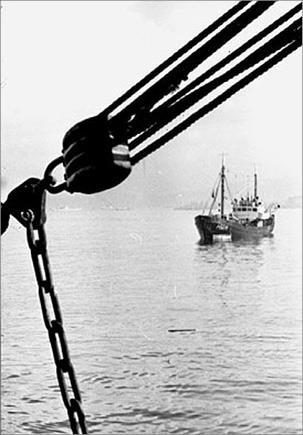На палубе вахтенные готовили траловое хозяйство. Без спешки, но очень споро они распутывали многочисленные тросы, веревки, сети. Посредине всего этого нагромождения стоял человек в высоких резиновых сапогах – тралмейстер. По мановению его руки каждая деталь снасти ложилась точно на свое место вдоль борта.