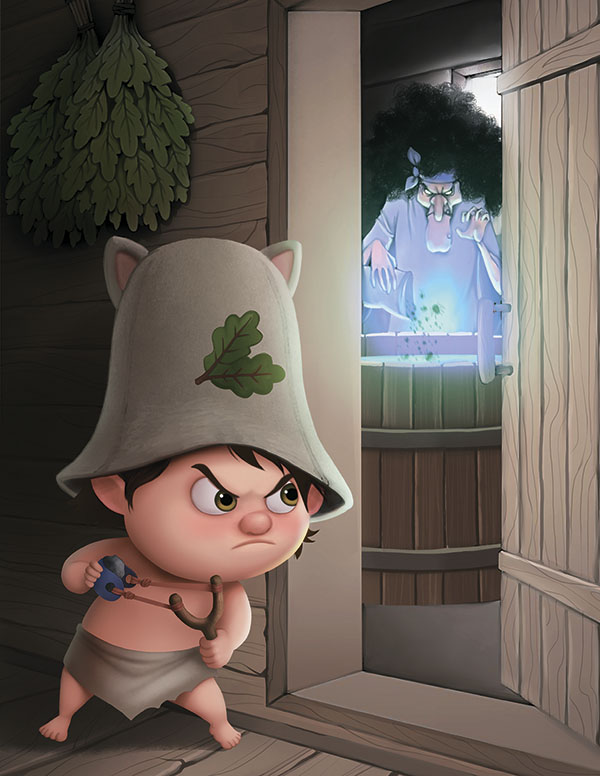 – Веничкин! Помогай! – Домовёнок вбежал в баню к другу. – Ведьма опять какую-то нечестную игру затеяла! Настю надо спасать!