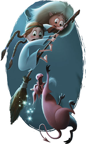 Настя тут же схватила веник, натёрла себя и Мохнатика волшебной мазью – и в последний момент, перед тем как один из чертей чуть не схватил её за ногу, они взмыли ввысь.