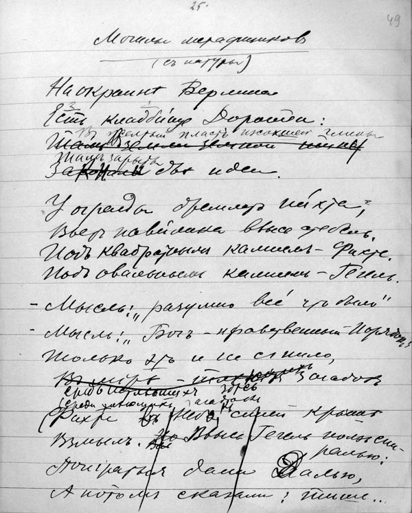 Есть ещё один резон в предпринятом порядке публикации текстов. Ед. хр. 72 представляет собой, как было упомянуто, одну тетрадь, ед. хр. 71 – три. Можно предположить, что объединение трёх тетрадей в одну единицу хранения каким-то образом отразило волю автора или его душеприказчицы А. Г. Бовшек.
