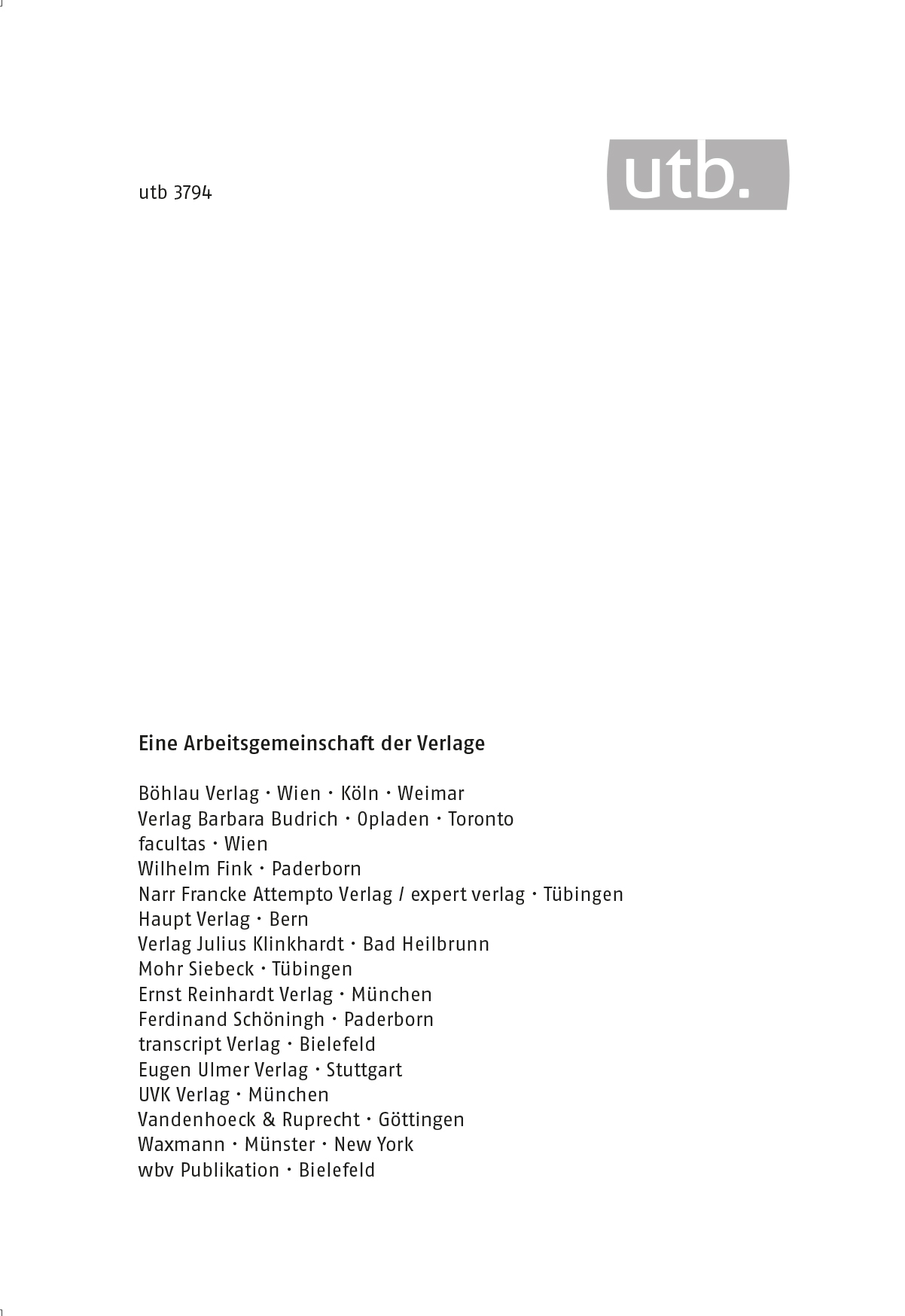 Das Werk einschließlich aller seiner Teile ist urheberrechtlich geschützt. Jede Verwertung außerhalb der engen Grenzen des Urheberrechtsgesetzes ist ohne Zustimmung des Verlages unzulässig und strafbar. Das gilt insbesondere für Vervielfältigungen, Übersetzungen, Mikroverfilmungen und die Einspeicherung und Verarbeitung in elektronischen Systemen.
