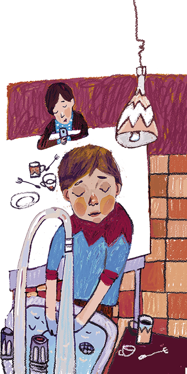 Папа пришёл, когда все садились за стол. Он был мрачнее тучи. Недовольно бурча, он пробрался в темноте на кухню – и тут же налетел на стоявший на полу таз.