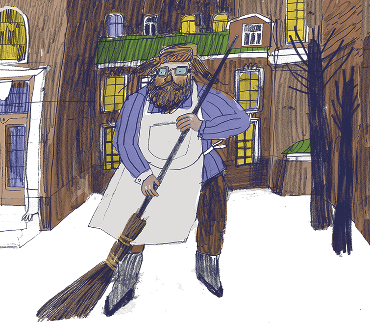 Им повезло. Сан Саныч, действительно сметал снег с решётки и напевал что-то вроде: