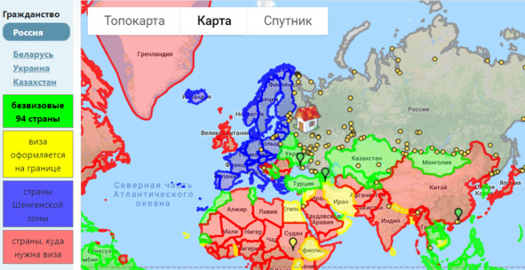 Визовая карта для граждан РФ на сайте www.Marsruty.ru