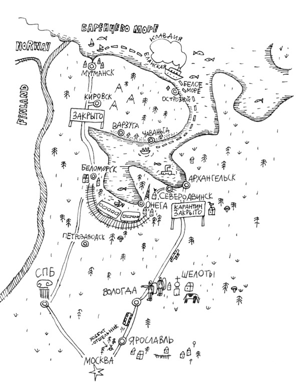 Путешествие имело несколько целей. Я планировал посетить своих многочисленных друзей в разных городах к северу от Москвы; проехать по железной дороге между Онегой и Беломорском (этот участок за все годы моих путешествий остался мной не проезженным); проплыть на корабле «Клавдия Еланская» вокруг Кольского полуострова; пройти пешком уже известный мне путь от Чаваньги до Варзуги на южном берегу Кольского (места, по которым я уже прошёл пешком в июне 1997 года); побывать в Доме для всех в Кировске, который должен был открыться вот-вот, в начале июля 2020. И проверить, как работает автостоп и возможны ли вольные путешествия в нашу «вирусную» эпоху!