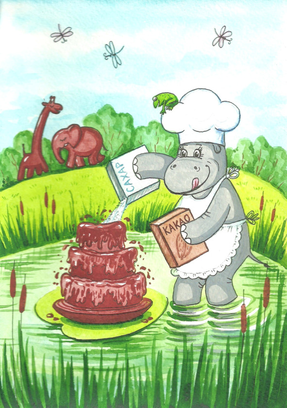 Малышка Бегемоти —Известная сластёна,Проглотит за минутуПол пряничного дома,Четыре мармеладкиИ клюквенный пирог.А если ест печенье,Берёт десяток впрок.Однажды услыхалаОт мастера ФазанаРецепт приготовленияДесертного фонтана.Какао не жалеяИ сахарный песок,Болото превратилаВ волшебный уголок…Уже три дня в долинеДела идут как надо:Все звери равномерноПокрыты шоколадом…Малышка очень рада,Ведь сбылся сладкий сон:Огромный, шоколадныйВ долине бродит слон.Бегемоти и пена
