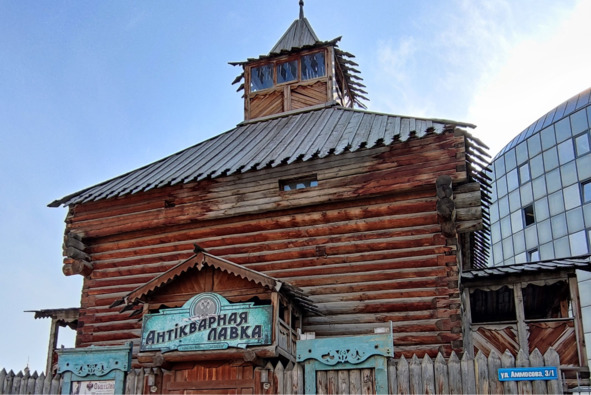 В их числе дом купца Мигалкина 1901 года с ажурными наличниками и ставнями на окнах, амбар, охотничье зимовье и, безусловно, якутский балаган – весьма необычное, приплюснутое к земле, прямоугольное зимнее жилище якутов с плоской крышей и наклонными, как у усеченной пирамиды, стенами, обмазанными глиной.