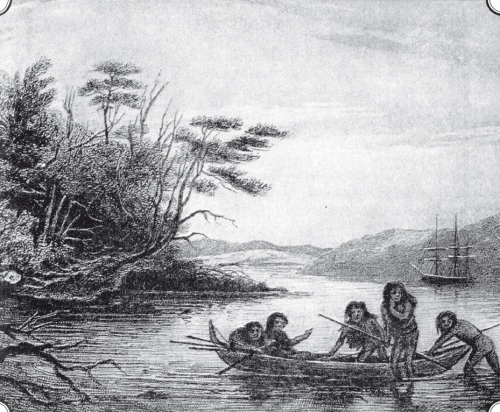 Попытки получить хоть какие-то сведения о европейских или американских поселениях, китобоях, путешественниках, миссионерах, так же, как и раньше, не дали результата. В связи с трудностями маневрирования корабля в узких проливах архипелага в условиях порывистого ветра, капитан принял решение двигаться дальше на шлюпках. Ранним утром три вельбота и один ялик с группой из двадцати восьми человек пустились в путь под руководством капитана Александра. После полудня, продвигаясь к берегу по одному из проливов, «флотилия» повстречалась с челноком, в котором находилось несколько Фуэгинов. Это были самые жалкие и убогие создания, каких только можно себе представить. В восточной части архипелага туземцы одеваются в плащи из шкур гуанако, в западной части – в тюленьи шкуры. Здесь же, у племен, живущих посередине, мужчины носят выдровую шкуру или какой-то маленький лоскуток с носовой платок, недостаточный даже, чтобы закрыть спину до поясницы. Эта накладка, стянутая тесемками, передвигается из стороны в сторону в зависимости от того, откуда дует ветер. Те Фуэгины, которых встретили наши путешественники в челноке, были совершенно нагими – и дети, и мужчины, и женщины. Шел сильный дождь, и по их телам струилась дождевая вода, смешиваясь с брызгами, срывающимися с вершин волн.