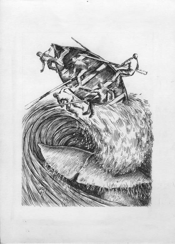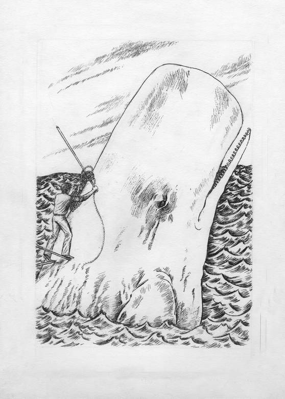 «Когда шлюпка подошла вплотную к Моби Дику, капитан прыгнул ему на спину и ухватился за торчащие гарпуны»