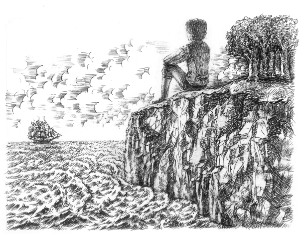 Корабль «Быстрые паруса» уходил в море. Добряк, как обычно, сидел на высокой скале и вглядывался в морскую даль.