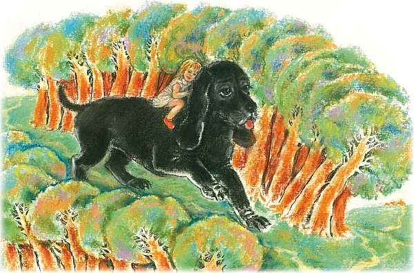 Черная гора была огромной собакой, и девочка находилась будто бы на вершине высокого холма. Но даже там, на очень большой высоте, ей было уютно, потому что она сидела в теплой и очень чистой шерсти собаки, держалась за ее шею и чувствовала себя в полной безопасности.