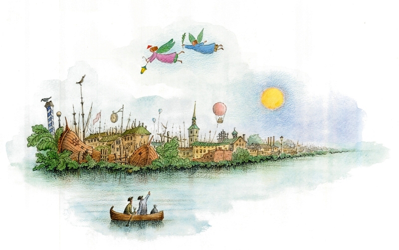 Там волны с блесками и всплескамиНепрекращаемого танца,И там летит скачками резкимиКорабль летучего Голландца.И если в час прозрачный, утренний,Пловцы в морях его встречали,Их вечно мучил голос внутреннийСлепым предвестием печали.Н. ГумилёвЕсли разглядывать Морию, когда она дрейфует со спущенными парусами, может показаться, что это обычный островок, низкий, без скал, с берегами, заросшими ивовыми деревьями и кустарником, полностью застроенный домами, выглядывающими из небольших кудрявых садиков.