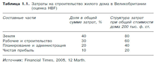 Рассмотрим пример с недвижимостью. Федерация строителей жилых домов (Home Builders Federation – HBF), базирующаяся в Лондоне, представила структуру затрат на жилой дом следующим образом.