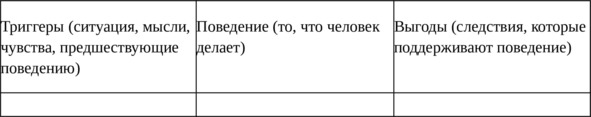 Выгоды (следствия, поддерживающие поведение): тревога уменьшилась, дискомфортные ощущения притупились.