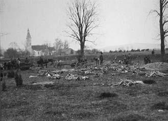 Солдаты специальных частей за уборкой трупов с поля боя у д. Блони. Октябрь 1914 г. Польша