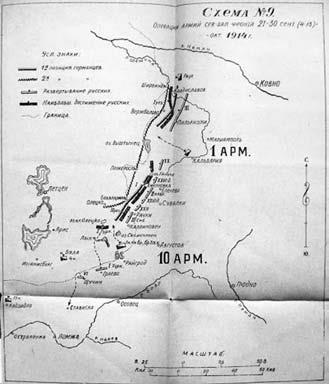Ясно было, что эту видоизмененную задачу, еще при отсутствии артиллерийской подготовки, среди белого дня, в 10½ часов утра выполнить было нельзя. Ясно было, что до укрепленной позиции немцев, на расстоянии только в одном пункте 800 шагов, а в других от 1000 до 1500, никто не дойдет, но никто и не возвратится назад, так как при малейшем нашем выдвижении вперед мы должны были подвергнуться не только огню с флангов, но и тыла. Кроме того, направляясь на Трухсен, у нас образовывался разрыв у озера, что давало возможность немцам двинуться на переправу нам в тыл, а в резерве ни одного солдата. Если же игнорировать направление на Трухсен и двинуться примыкая к озеру, то получался разрыв с 19 полком, что давало возможность противнику сделать то же, но все же мною было приказано 4 батальону двинуться вперед.