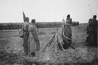 Солдаты и офицеры одной из армейских частей во время богослужения. 1914 г.
