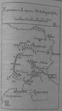 14 января. Приказом командующего армией от 9 января № 39 корпусу назначена тыловая дорога от Рантена на Лык, Чарна – Весь – Райгород – Августов – Курьянки – Гродна.