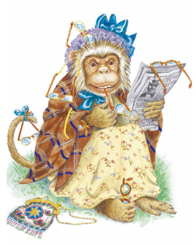 Мартышка к старости слаба глазами стала; А у людей она слыхала, Что это зло ещё не так большой руки: Лишь стоит завести Очки.Очков с полдюжины себе она достала; Верти́т Очками так и сяк:То к темю их прижмёт, то их на хвост нанижет, То их понюхает, то их полижет; Очки не действуют никак.«Тьфу пропасть! – говорит она, – и тот дурак, Кто слушает людских всех врак: Всё про Очки лишь мне налгали; А проку на-волос нет в них». Мартышка тут с досады и с печали О камень так хватила их, Что только брызги засверкали. К несчастью, то ж бывает у людей:Как ни полезна вещь, – цены не зная ей,Невежда про неё свой толк всё к худу клонит; А ежели невежда познатней, Так он её ещё и гонит.