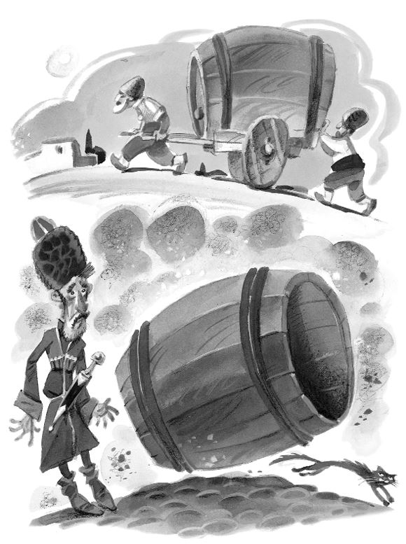 Две Бочки ехали; одна с вином, Другая Пустая.Вот первая – себе без шуму и шажком Плетётся, Другая вскачь несётся;От ней по мостовой и стукотня, и гром, И пыль столбом;Прохожий к стороне скорей от страху жмётся, Её заслышавши издалека. Но как та Бочка ни громка,А польза в ней не так, как в первой, велика.