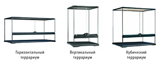 Типы и формы террариумов традиционно одинаковы для различных групп рептилий: пустынный, субтропический и тропический; горизонтальный, вертикальный и кубический – об этом написано во многих руководствах. Позже, в обзоре видов мы более детально остановимся на том, какие типы и размеры террариумов необходимы для того или иного вида, в зависимости от его природного биотопа.